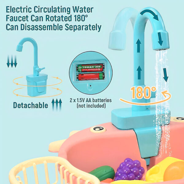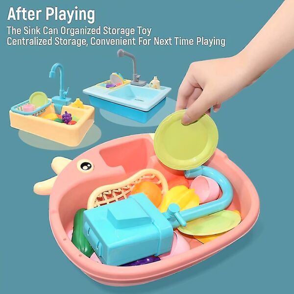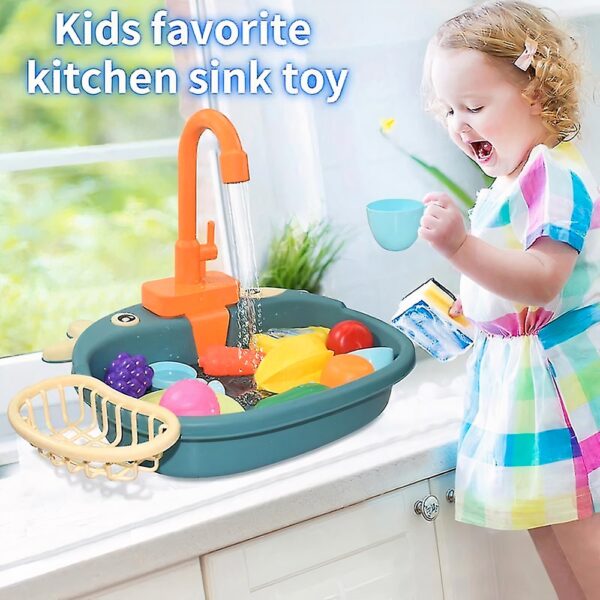 Bocis mosogató készlet gyerekeknek – elemes játék konyhai mosogató szett tányérokkal, evőeszközökkel – 33 x 26 x 7 cm (BBJ)