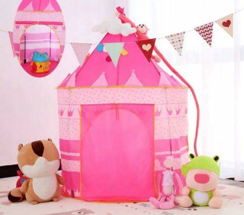 Rózsaszín varázskastély játszósátor – hordozható, kültérre, beltérre, 135x105cm (BBJ)